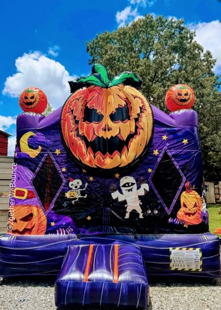 The Jack O’ Lanter Bounce House is ready for your Halloween party this bouncer is a 2 in 1 has a basketball hoop inside , this year. Give the kiddos what they really want this holiday season. Be the scare of the town when your neighbors see this fun attraction at your haunted house!