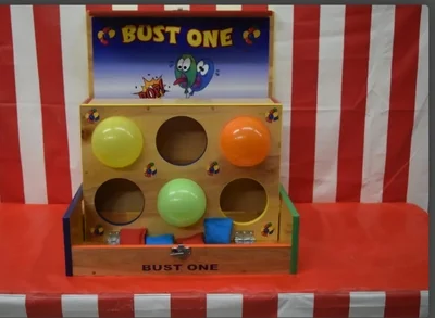 A balloon burst game that is safe for all ages! Each player throws bean bags at the balloon attempting to pop it. When the bean bag hits the balloon, it pushes it back again a screw and the balloon pops. Bust One comes complete with 9″ balloons and one dozen bean bags. Our Case Games are easy to break down and set up. They are stackable, portable and extremely durable. Everything stores inside the case.