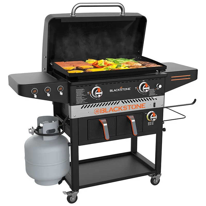 Grill for events. Comes with propane. Great for burgers, hot dogs, and more.