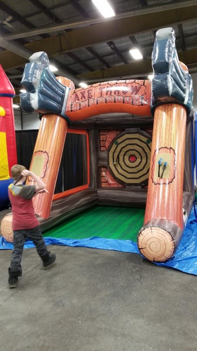 Do you want to have an axe throwing party but don't feel like having your guests throw sharp metal objects inside your house or in your backyard? If that's the case our inflatable axe throwing game is for you! Our inflatable axe throwing game is the perfe