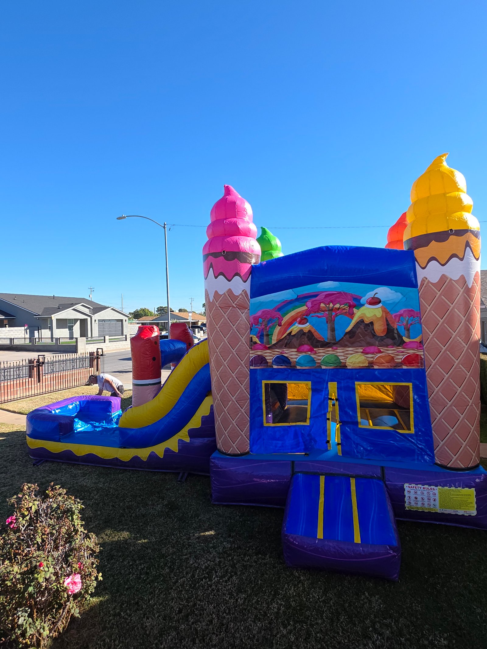 Yes! Our team handles delivery, setup, and takedown so you don’t have to lift a finger. Whether it’s a bounce house party rental in Phoenix, AZ, for a backyard birthday or a community event, we arrive on time, set everything up securely, and return after the party to pack it all up. Stress-free fun—that’s our promise.